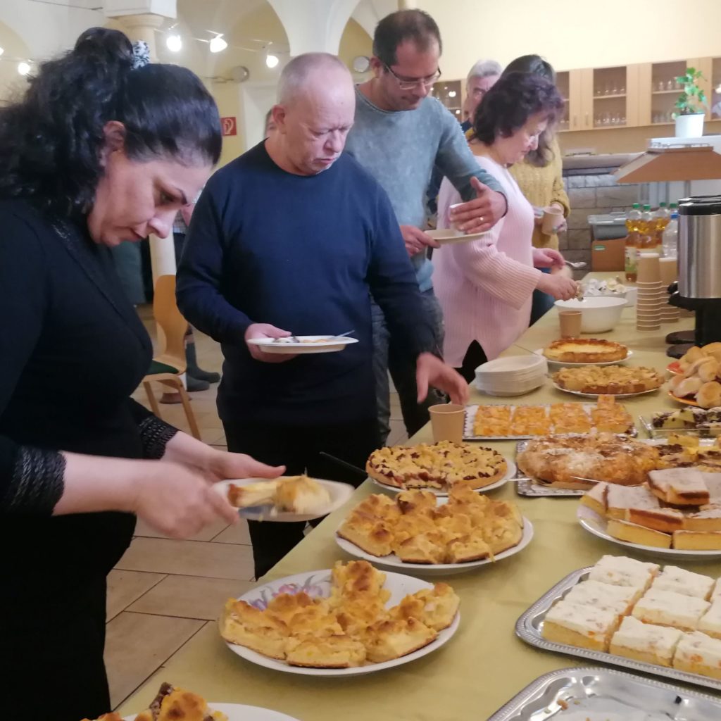 Berge selbstgebackenen Kuchens vom Küchenteam der Otegau sowie den Helfern vom Steinweg, wo sonst üblicherweise sofort nach getaner Arbeit gegessen und getrunken wurde, was Corona verhinderte, wurden ergänzt durch Piroggen und Apfelkuchen von ukrainischen Kriegsflüchtlingen.
